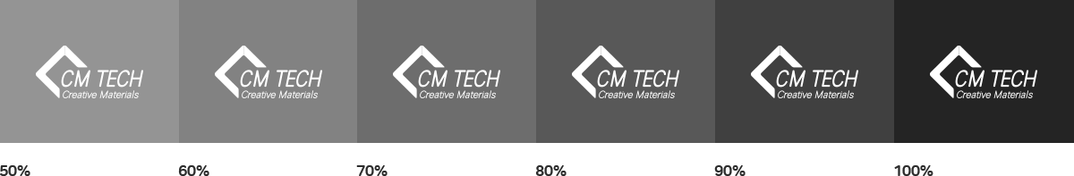 색상 활용은 (주)씨엠테크의 이미지를 어떤한 조건에서도 일관되게 표현하기 위한 색상 활용 지침으로 배경 색상 및 재료에 따라 표현할 수 있는 색상 범위를 예시한 것으로